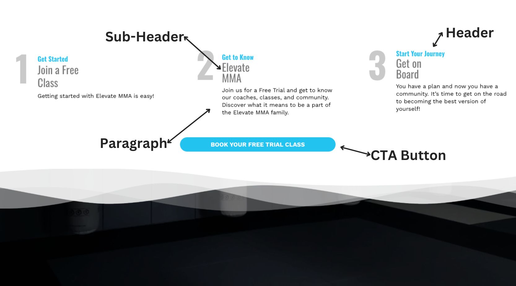 For this section, please least out the name of the form followed by the page it belongs to followed by the questions and or fields you wish to included on the form. For example, Form 1 = Free Consultation, Booking Page, Full Name, Email, Phone, and a dropdown for program interest.